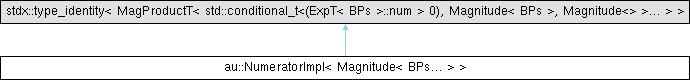 Inheritance diagram for au::NumeratorImpl< Magnitude< BPs... > >: