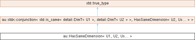 Inheritance diagram for au::HasSameDimension< U1, U2, Us... >: