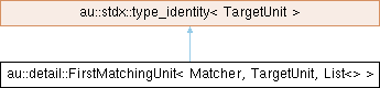 Inheritance diagram for au::detail::FirstMatchingUnit< Matcher, TargetUnit, List<> >: