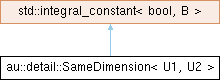 Inheritance diagram for au::detail::SameDimension< U1, U2 >: