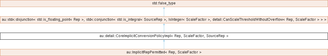 Inheritance diagram for au::detail::CoreImplicitConversionPolicyImpl< Rep, ScaleFactor, SourceRep >: