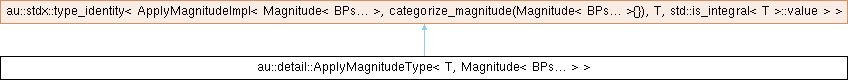 | Public Types inherited from au::stdx::type_identity< ApplyMagnitudeImpl< Magnitude< BPs... >, categorize_magnitude(Magnitude< BPs... >{}), T, std::is_integral< T >::value > > | |