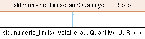 Inheritance diagram for std::numeric_limits< volatile au::Quantity< U, R > >: