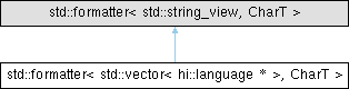 Inheritance diagram for std::formatter< std::vector< hi::language * >, CharT >: