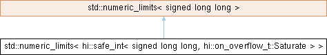 Inheritance diagram for std::numeric_limits< hi::safe_int< signed long long, hi::on_overflow_t::Saturate > >: