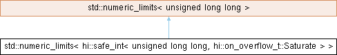 Inheritance diagram for std::numeric_limits< hi::safe_int< unsigned long long, hi::on_overflow_t::Saturate > >:
