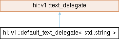 Inheritance diagram for hi::v1::default_text_delegate< std::string >:
