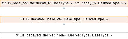 Inheritance diagram for v1::is_decayed_derived_from< DerivedType, BaseType >: