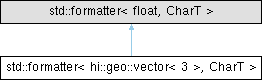 Inheritance diagram for std::formatter< hi::geo::vector< 3 >, CharT >: