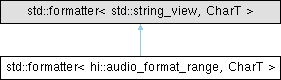 Inheritance diagram for std::formatter< hi::audio_format_range, CharT >: