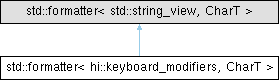 Inheritance diagram for std::formatter< hi::keyboard_modifiers, CharT >: