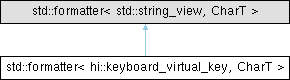Inheritance diagram for std::formatter< hi::keyboard_virtual_key, CharT >: