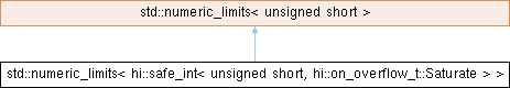 Inheritance diagram for std::numeric_limits< hi::safe_int< unsigned short, hi::on_overflow_t::Saturate > >: