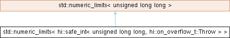 Inheritance diagram for std::numeric_limits< hi::safe_int< unsigned long long, hi::on_overflow_t::Throw > >: