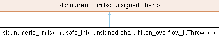 | Public Member Functions inherited from std::numeric_limits< unsigned char > | |