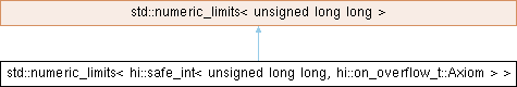 Inheritance diagram for std::numeric_limits< hi::safe_int< unsigned long long, hi::on_overflow_t::Axiom > >: