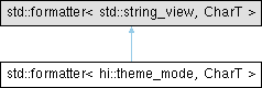 Inheritance diagram for std::formatter< hi::theme_mode, CharT >: