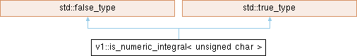 Inheritance diagram for v1::is_numeric_integral< unsigned char >: