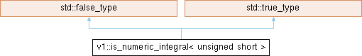 Inheritance diagram for v1::is_numeric_integral< unsigned short >: