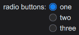 In the following example we create three radio button widgets on the window which observes the same value. Each radio button is configured with a different on_value: 1, 2 and 3. Initially the value is 0, and therefor none of the radio buttons is selected when the application is started.