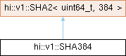 Public Member Functions inherited from hi::v1::SHA2< uint64_t, 384 > | |