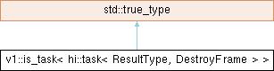 Inheritance diagram for v1::is_task< hi::task< ResultType, DestroyFrame > >: