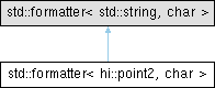 Inheritance diagram for std::formatter< hi::point2, char >: