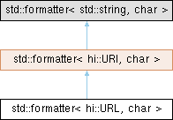 Inheritance diagram for std::formatter< hi::URL, char >: