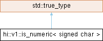 Inheritance diagram for hi::v1::is_numeric< signed char >: