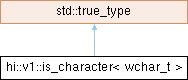 Inheritance diagram for hi::v1::is_character< wchar_t >: