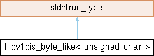 Inheritance diagram for hi::v1::is_byte_like< unsigned char >: