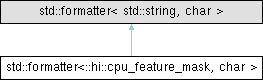Inheritance diagram for std::formatter<::hi::cpu_feature_mask, char >: