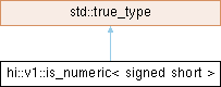 Inheritance diagram for hi::v1::is_numeric< signed short >: