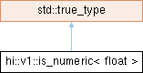 Inheritance diagram for hi::v1::is_numeric< float >:
