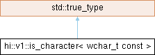 Inheritance diagram for hi::v1::is_character< wchar_t const >:
