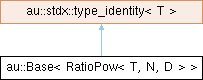 Inheritance diagram for au::Base< RatioPow< T, N, D > >: