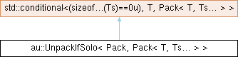 Inheritance diagram for au::UnpackIfSolo< Pack, Pack< T, Ts... > >: