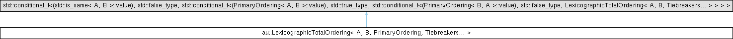Inheritance diagram for au::LexicographicTotalOrdering< A, B, PrimaryOrdering, Tiebreakers... >:
