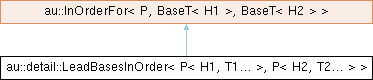 Inheritance diagram for au::detail::LeadBasesInOrder< P< H1, T1... >, P< H2, T2... > >: