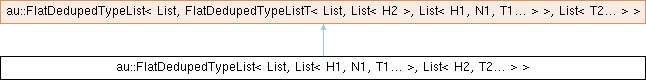 Inheritance diagram for au::FlatDedupedTypeList< List, List< H1, N1, T1... >, List< H2, T2... > >: