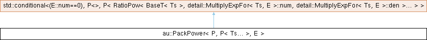 Inheritance diagram for au::PackPower< P, P< Ts... >, E >: