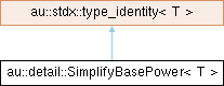 Inheritance diagram for au::detail::SimplifyBasePower< T >:
