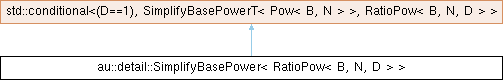 Inheritance diagram for au::detail::SimplifyBasePower< RatioPow< B, N, D > >: