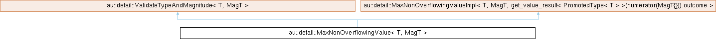 Inheritance diagram for au::detail::MaxNonOverflowingValue< T, MagT >:
