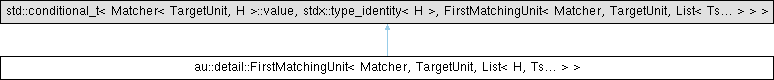 Inheritance diagram for au::detail::FirstMatchingUnit< Matcher, TargetUnit, List< H, Ts... > >:
