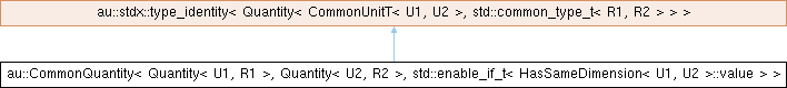 Inheritance diagram for au::CommonQuantity< Quantity< U1, R1 >, Quantity< U2, R2 >, std::enable_if_t< HasSameDimension< U1, U2 >::value > >: