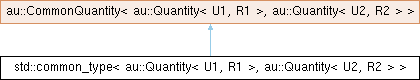 Inheritance diagram for std::common_type< au::Quantity< U1, R1 >, au::Quantity< U2, R2 > >: